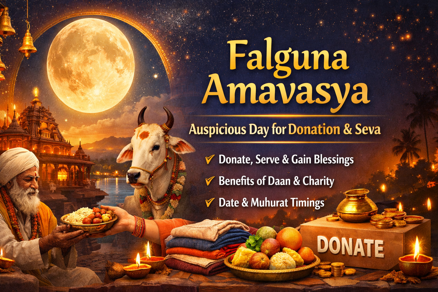 Donation on Falguna Amavasya is not just charity—it is a spiritual investment. Scriptures mention that daan performed on Amavasya never goes in vain.
