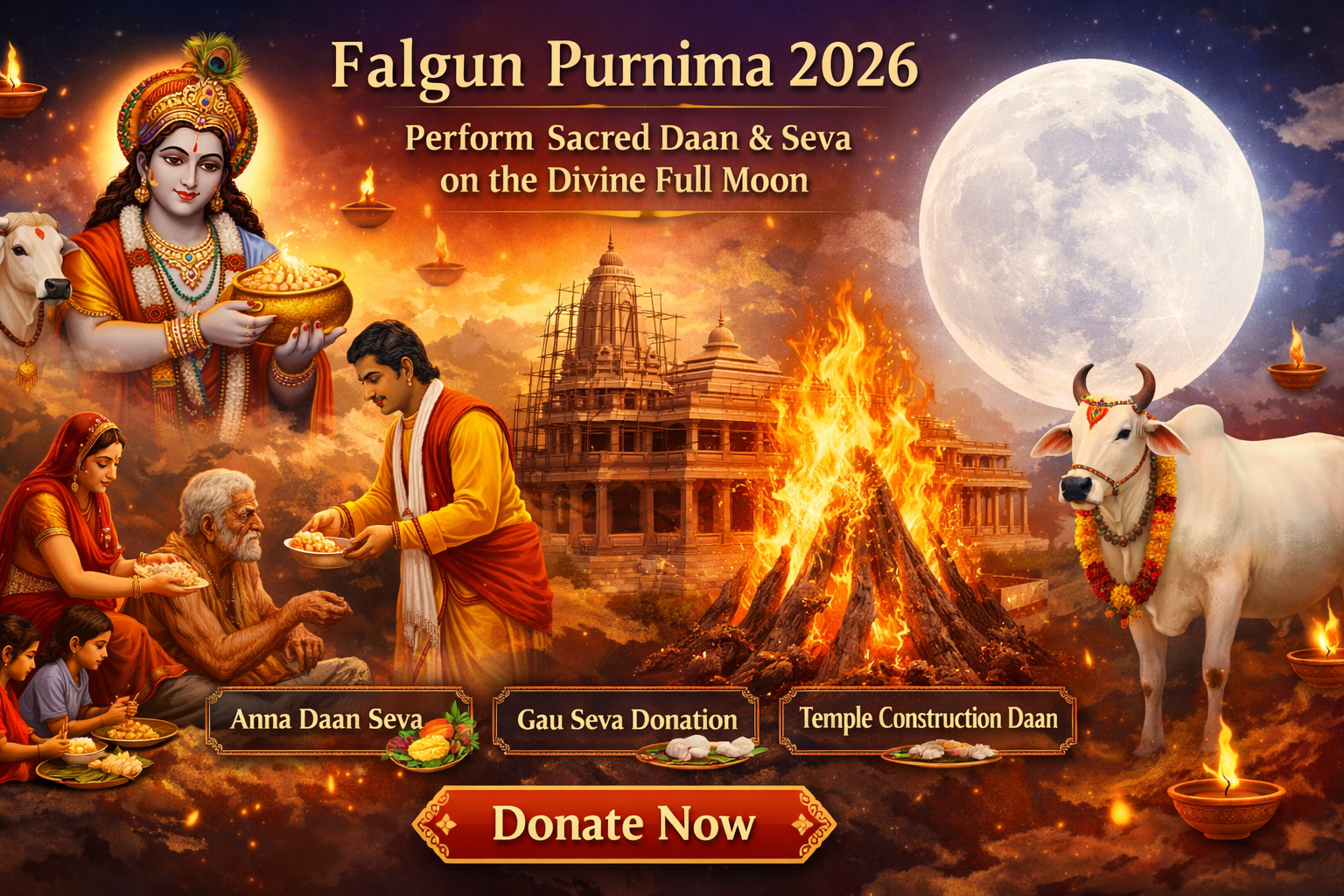 Make your Falgun Purnima 2026 meaningful by participating in sacred seva and donation programs.